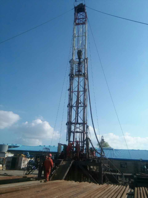 圖片新聞:公司院內(nèi)的地?zé)嵩囼炓痪绿坠苁┕ぃ?017年史文全報道)