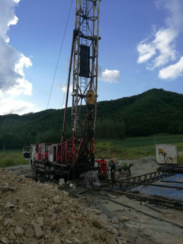 圖片新聞:公司院內(nèi)的地?zé)嵩囼炓痪?,下套管施工?017年史文全報道)